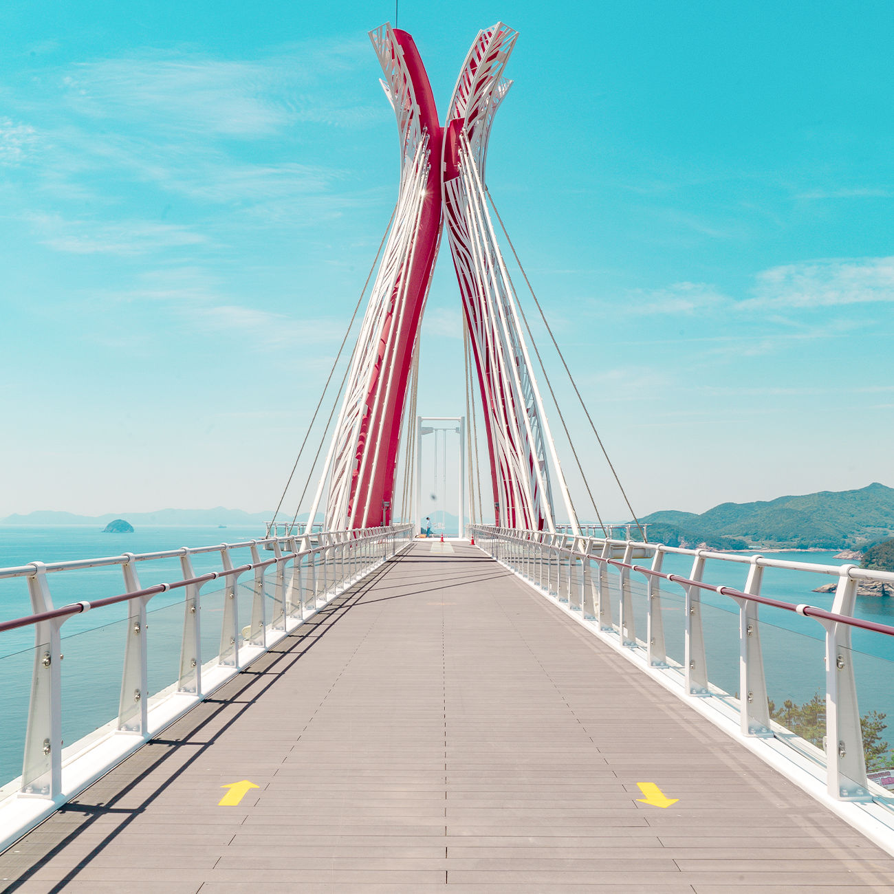 설리스카이워크는 남해의 자랑거리이자 유명 관광지입니다. 바닷가 끝에 자리한 그네로 가는 길이 유리 바닥으로 되어 있어서 마치 바다 위를 걷는듯한 느낌이 듭니다.